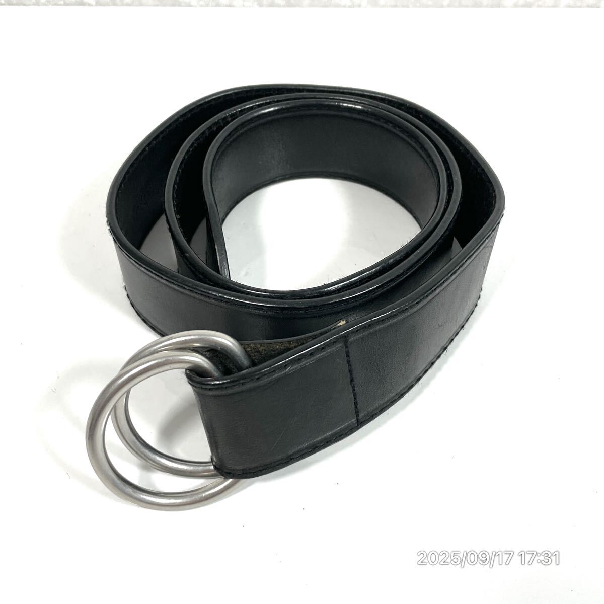 - Ralph Lauren ラルフローレン ダブルリング シルバー ×ブラックカラー レザー 革 シンプル ベルト 装飾品