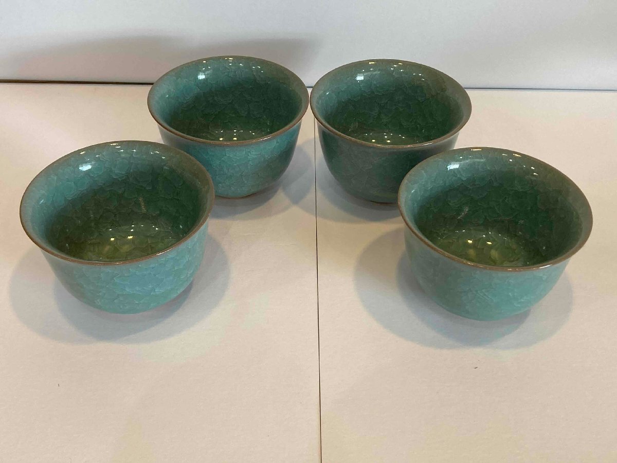 - 1円~【ワケあり】たち吉 九重青磁 湯呑 4客 茶器