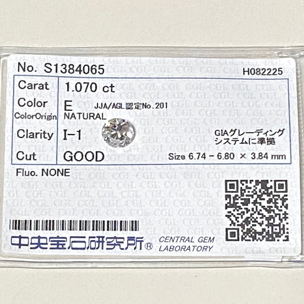 > ダイヤモンド ルース 1.070ct E I-1 GOOD 中央宝石研究所/CGL ソーティング付き 天然ダイヤモンド ダイヤ ダイヤルース