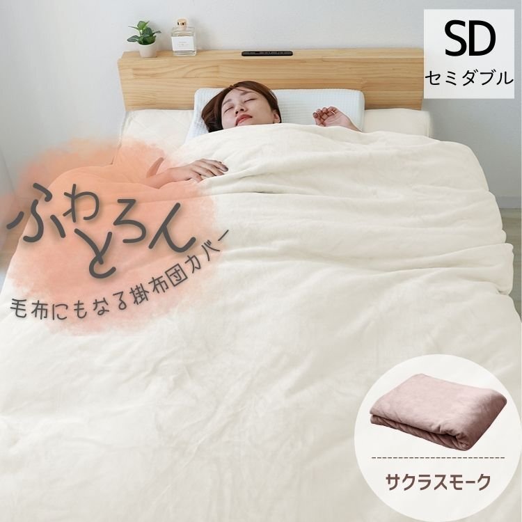 > 【セミダブル サクラスモーク】掛け布団カバー シングル 布団カバー 冬 暖かい あったか 毛布になる 毛布カバー 洗える 無地 低ホルム