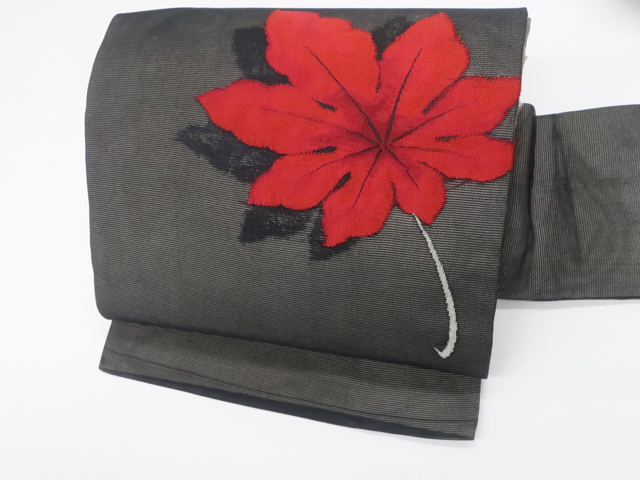 - 《京都一輝堂》リサイクル着物 九寸名古屋帯 夏物 夏 太鼓柄 紅葉 正絹 25b08-1607