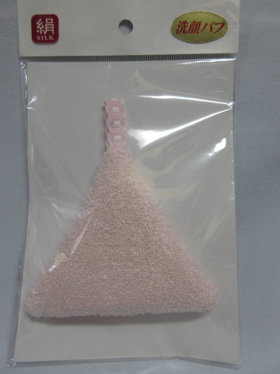 - ★ 疲れた肌のお手入れに! シルク・パフ 美肌効果満点 博多織の絹洗顔パフ ピンク色の三角型 追加割引有