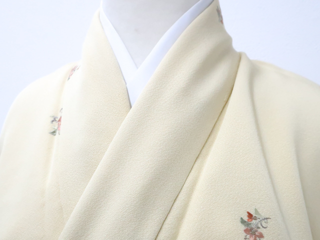 > 《京都一輝堂》リサイクル着物 小紋 中国刺繍 小花 正絹 身丈約155.5cm 裄丈61cm 25z08-4900