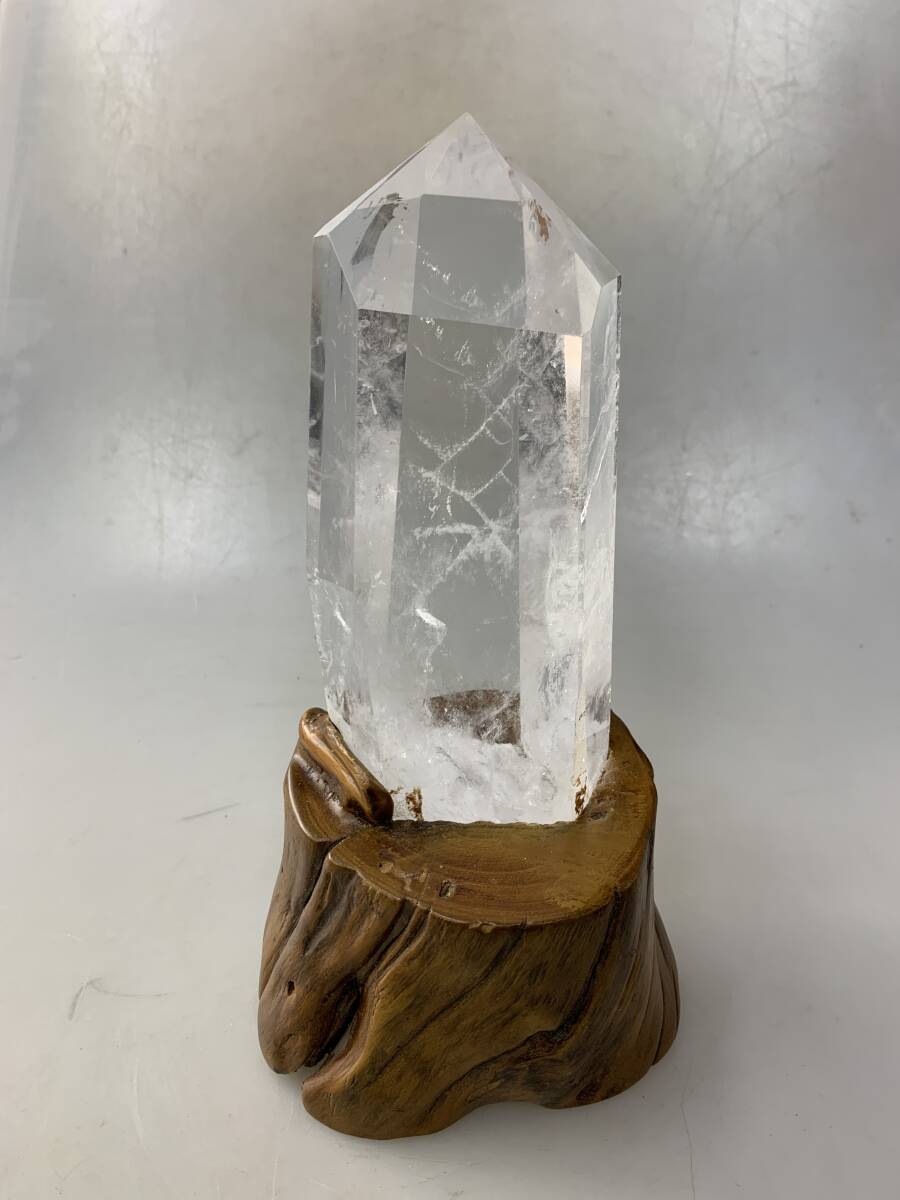 - N2405 水晶? 六角柱 置物 インテリア オブジェ 天然石 パワーストーン 高:27cm