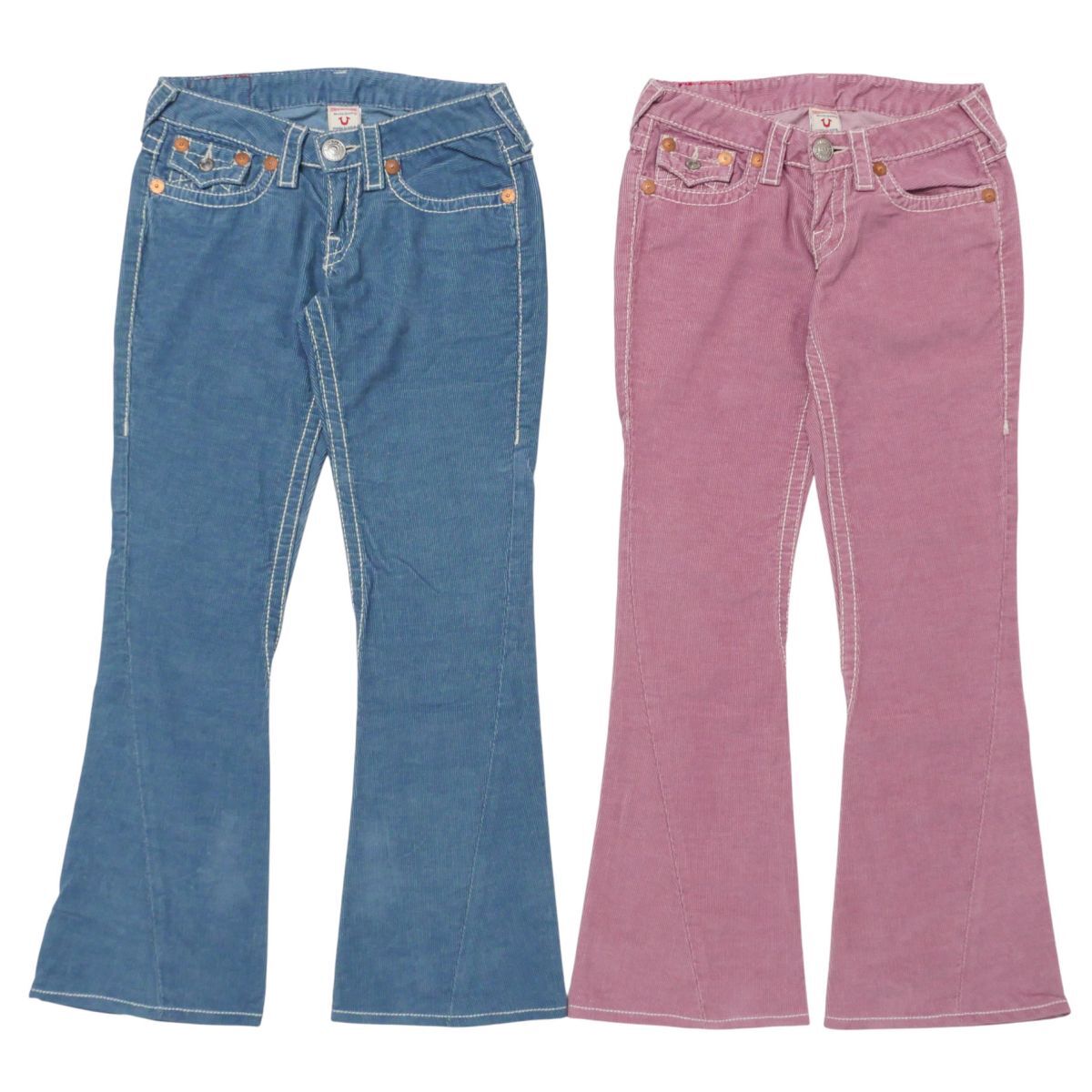 - TJ2492☆2点セット トゥルーレリジョン TRUE RELIGION コーデュロイ ブーツカットパンツ フレアパンツ ローライズ ブルー/ピンク サイズ27
