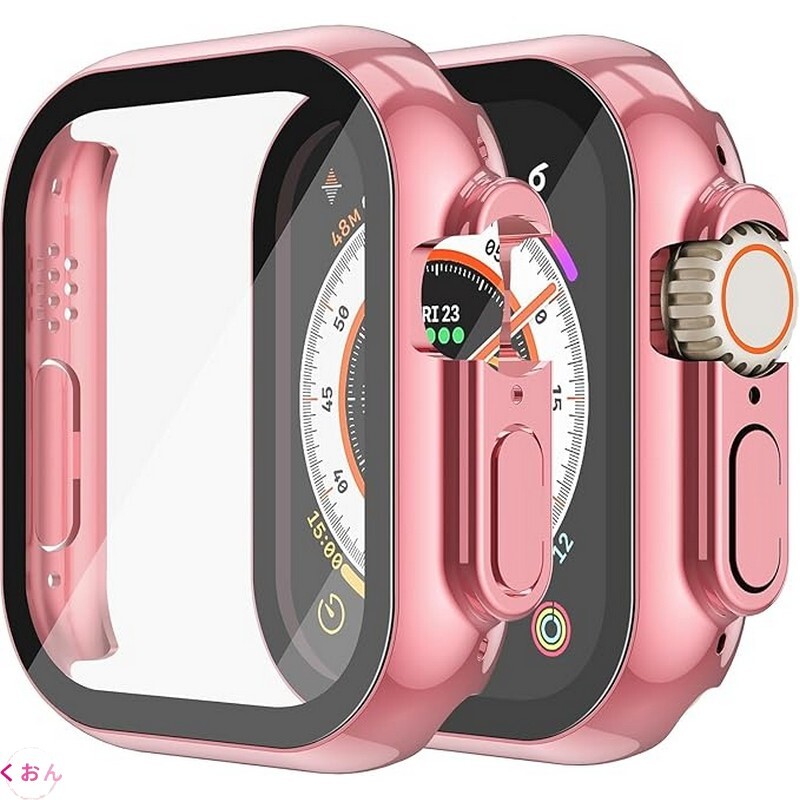 - ローズピンク 49mm PC + 強化ガラス 一体型 装着簡単 アップル ウォッチ Apple Watch Ultra 3 / 2 / 1 耐衝撃 全面保護 ケース カバー