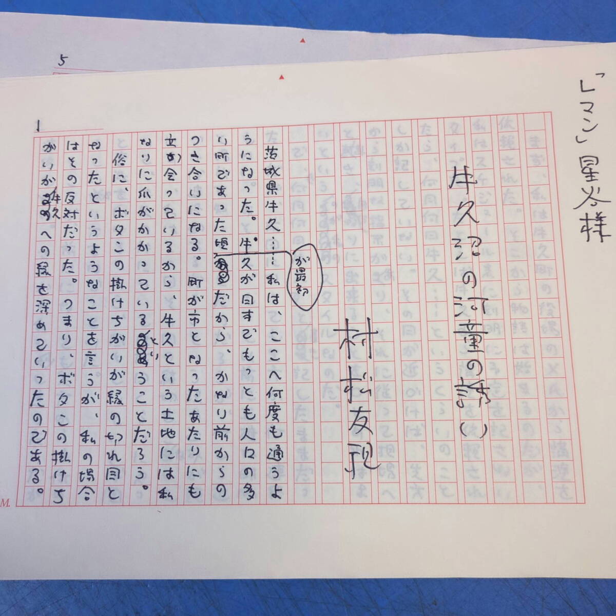 - kankando 村松友視肉筆原稿『牛久沼の河童の誘い』5枚完 レマン《真作》