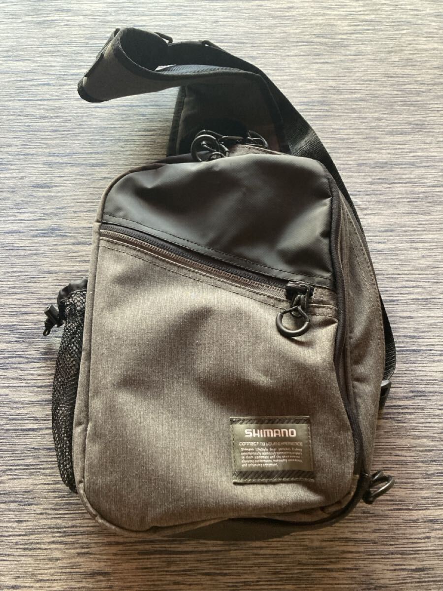 - 美品 シマノ 純正 シマノ ランガン ショルダーバッグ グレー スリングバック 斜めがけ 肩掛け ボディー タックル 小物 ルアー 道具 仕掛け