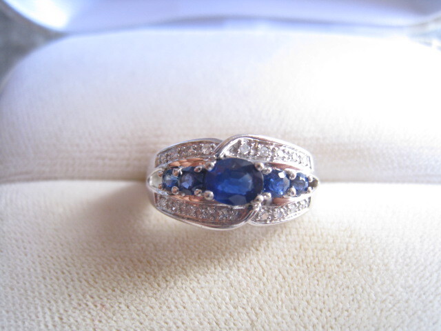 - [SAMU]素敵!!超輝き 天然サファイア k14WGホワイトゴールド指輪 リング 超美品!