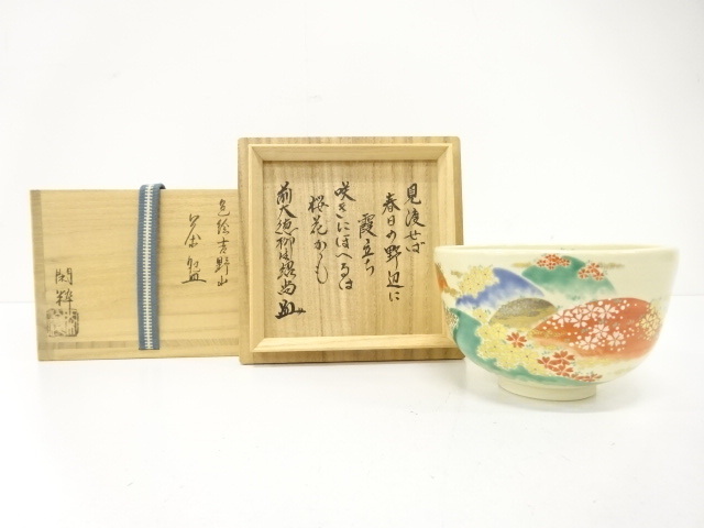 - 南口閑粋造 色絵 吉野山 茶碗 (前大徳寺:橋本紹尚書付) (ICJ1D-020)