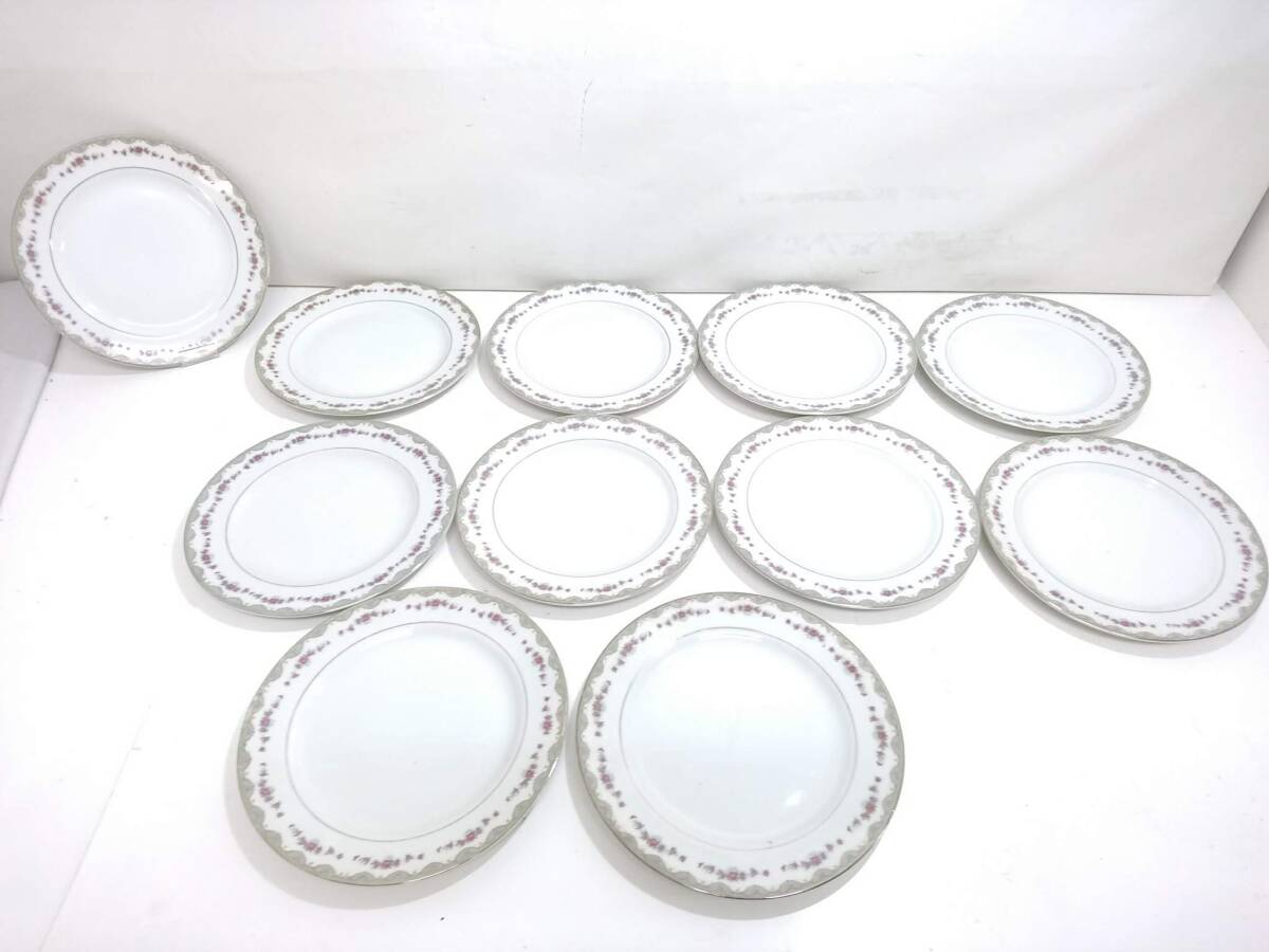 > 【USED品】プレート おまとめ11点セット/直径約23.5cm/高さ約2cm/丸皿/大皿/花柄/銀彩/レトロ/洋食器/8-RHB88