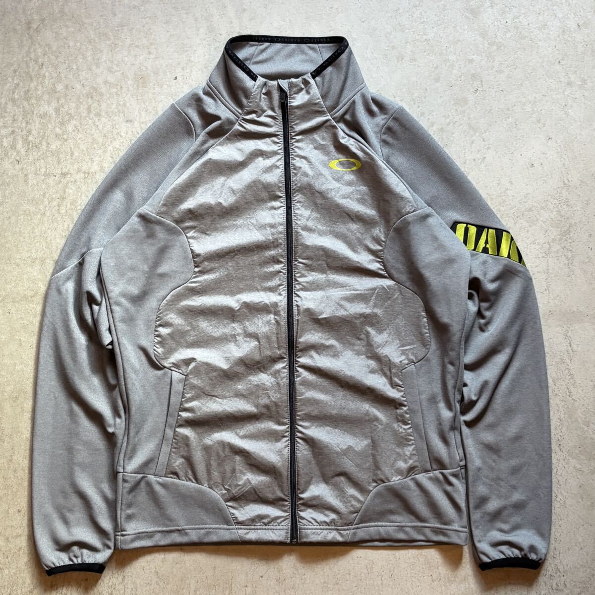 > 【美品】OAKLEY オークリー トラックジャケット ジャージ ウインドブレーカー メンズ XL 灰/Gray ロゴ プリント スポーツ ウェア 正規品
