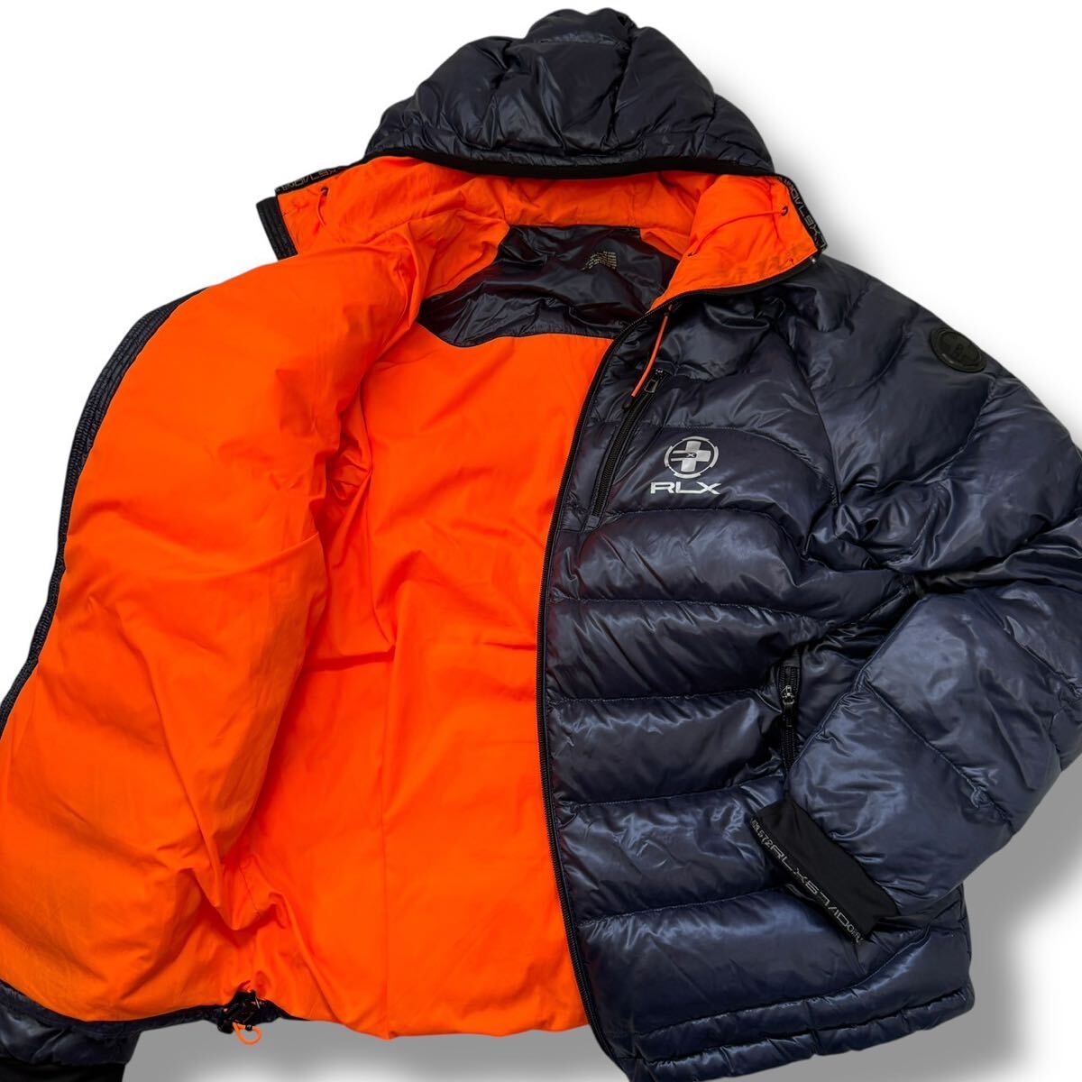 - 940 美品/L相当★ RLX RALPH LAUREN ラルフローレン ダウンジャケット ブルゾン アウター Wジップ ネイビー オレンジ メンズ ロゴワッペン