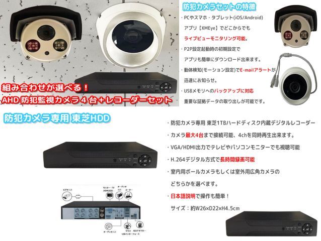 - 【在庫処分につきセール】防犯カメラ 4台セット 監視カメラ 東芝HDD内蔵 1TB ハードディスク 家庭用 ペット 見守りカメラ ③