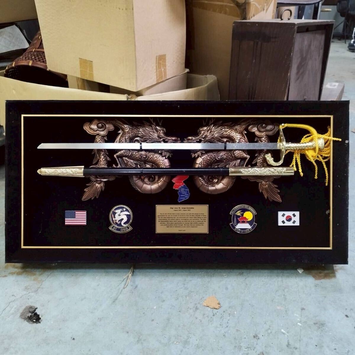 - 西A01 米軍 額入れ鍔 模造刀 M. Jorge-Gonzalez 米空軍 当時物 模造刀 レプリカ コレクション 刀剣額 壁掛け インテリア