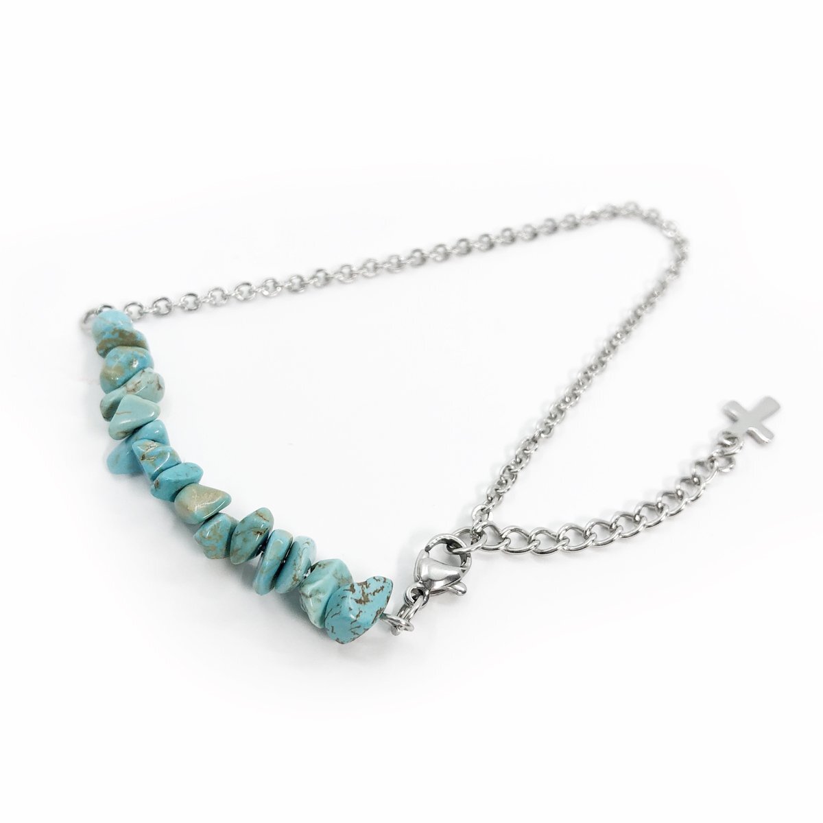 - ステンレスチェーン アンクレット 染めターコイズ 平小豆チェーン幅約2.5mm 27cm(23cm+4cmアジャスター) GN36