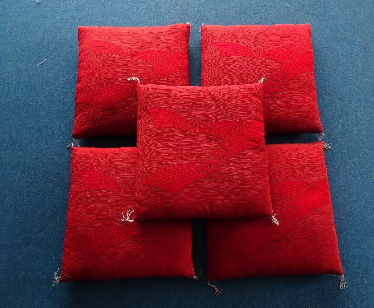 - 品名: 座布団(5枚セツト)・色素: 柄入り(赤) ・素材: 綿100% ・サイズ: 55㎝×55㎝・NO-R7-1-13.8