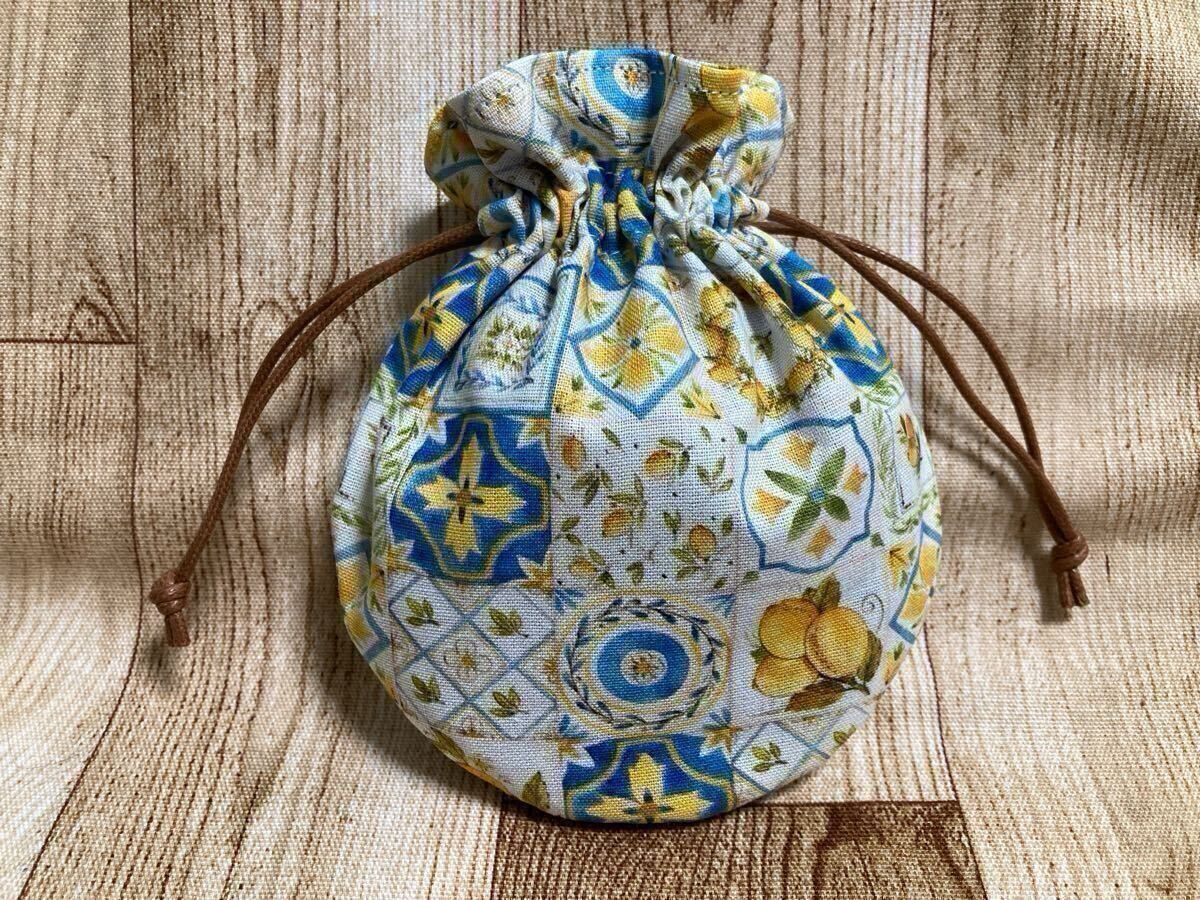 - 巾着袋 巾着 レモン 丸底 ハンドメイド ミニ巾着