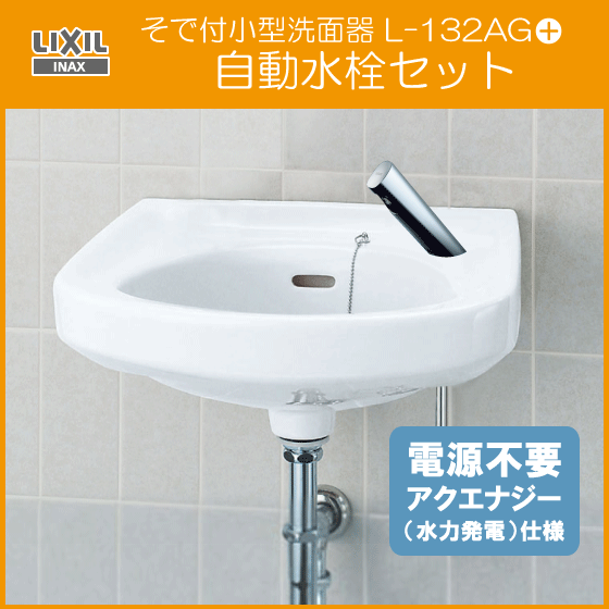 > そで付小形洗面器 自動水栓(アクエナジー仕様)セット L-132AG,AM-300C LIXIL INAX リクシル イナックス