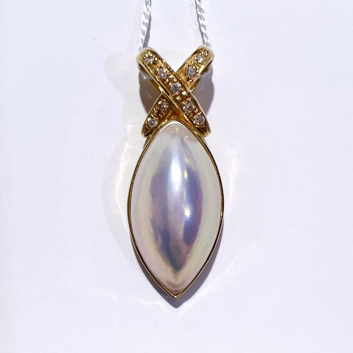 - K18 天然 マベパール ダイヤ ネックレス ペンダント トップ 2.8g 本真珠 レディース アクセサリー 美品