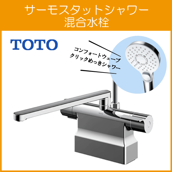 - 台付サーモスタット混合栓(取り替え兼用) サーモシャワー コンフォートウェーブクリック めっき TBV03453J TOTO GGシリーズ