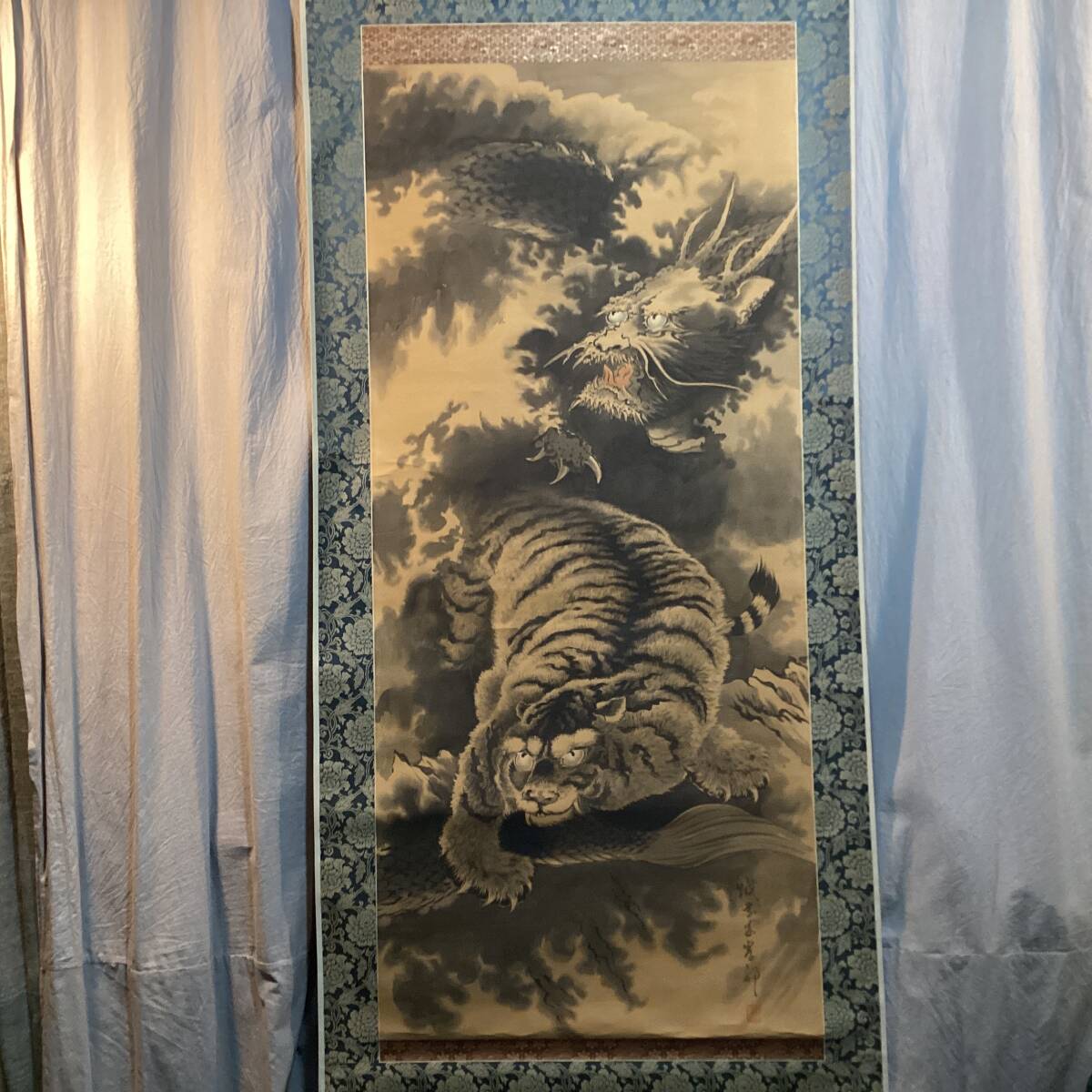 - [模写]佐伯岸駒 龍虎図掛軸大幅 絹本淡彩