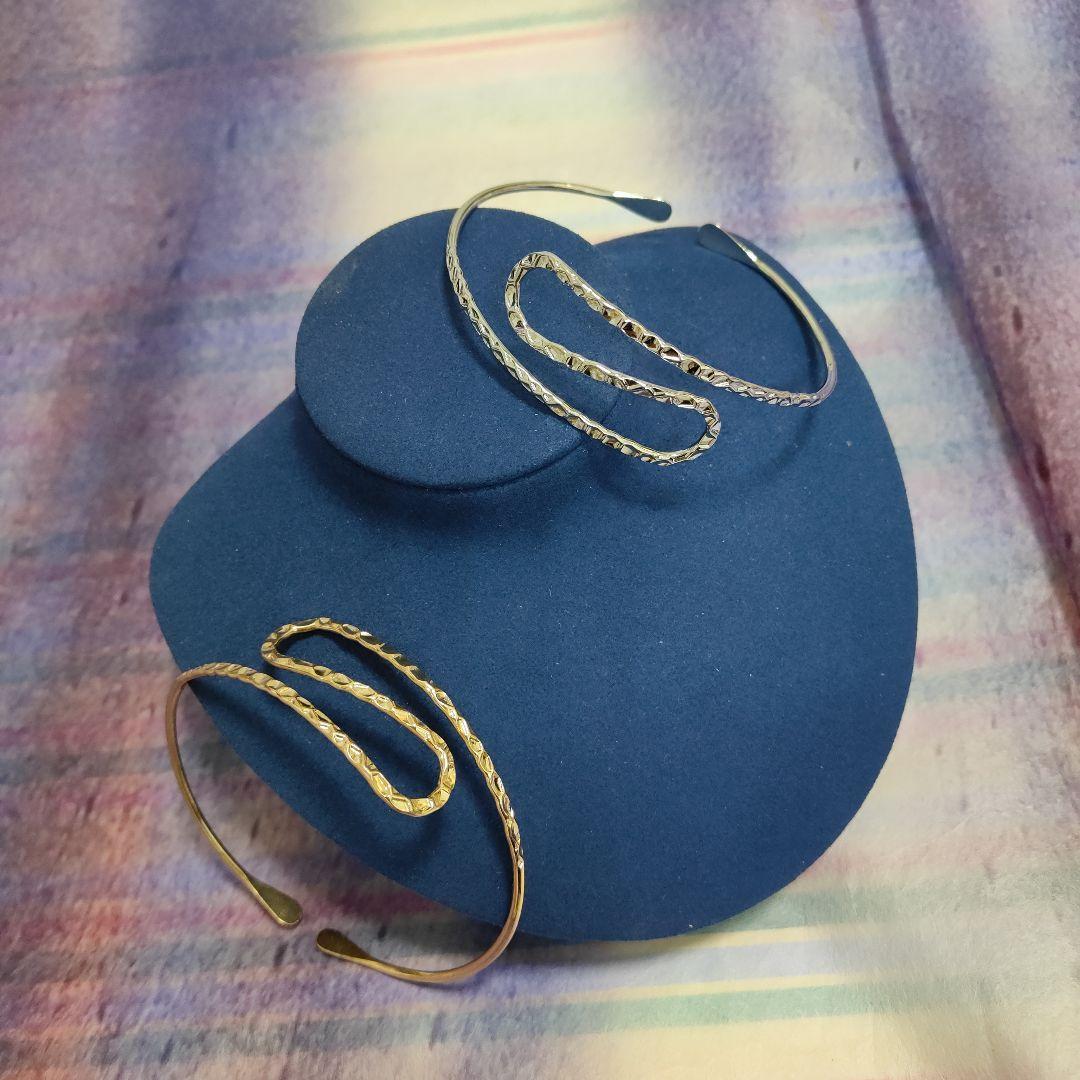 - アームカフ 2個セット シルバー&ゴールド色 二の腕バングル 上腕バングル 兼用