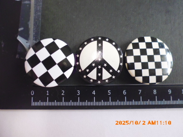 - ピースマーク ビンテージ丸形缶バッチ3個 直径3cm 白黒