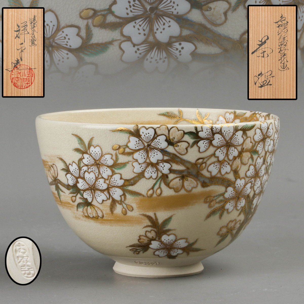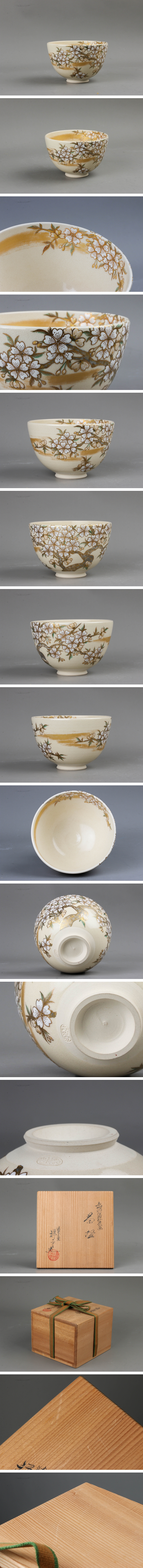 【SAG】杉田祥平 清閑寺窯 色絵桜花画茶碗 共箱 本物保証