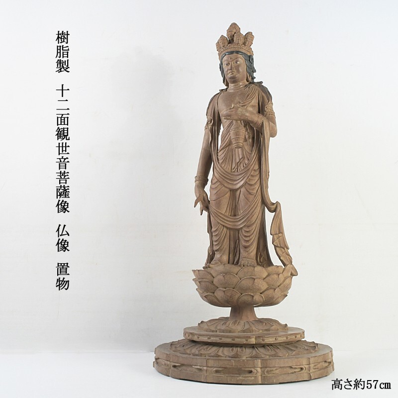 - 仏教美術 樹脂製 十二面観世音菩薩像 仏像 置物 高さ約57㎝ 古玩 VFJS