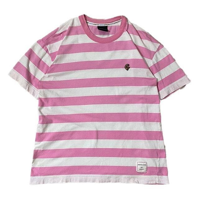 - GDC グランドキャニヨン ボーダーTシャツ 白×ピンク 裏原 Gワッペン B247