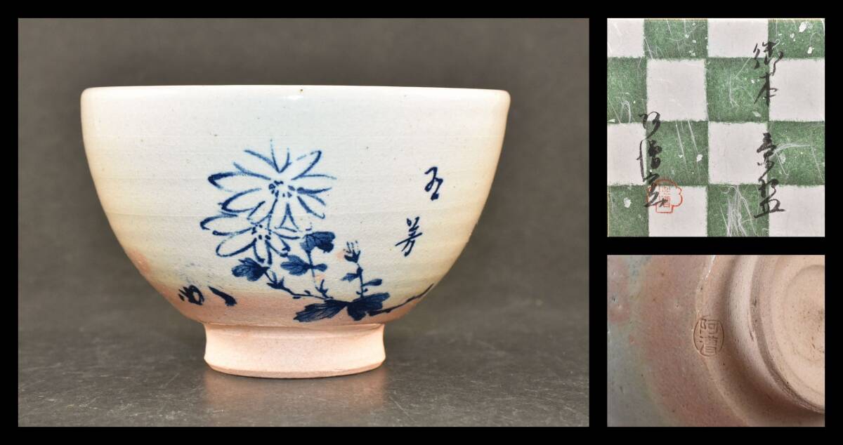 - ■楠廸庵■茶道具 堀内宗完絵 阿漕焼 お茶碗 茶碗 紙箱入 菊絵