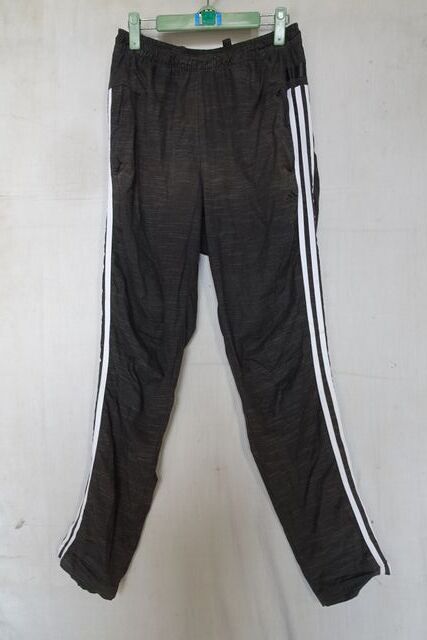 - adidas/アディダス/トラック長パンツ/やや薄手素材/白3本ラインテープ/横スジのある生地/ファスナー付ポケット/黒/白/Lサイズ(10/2R7)