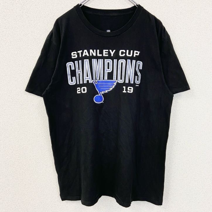 - 古着 used NHL 半袖クルーネックTシャツ バックプリント スタンレーカップ ホッケー 黒 ブラック 春夏服 Lサイズ