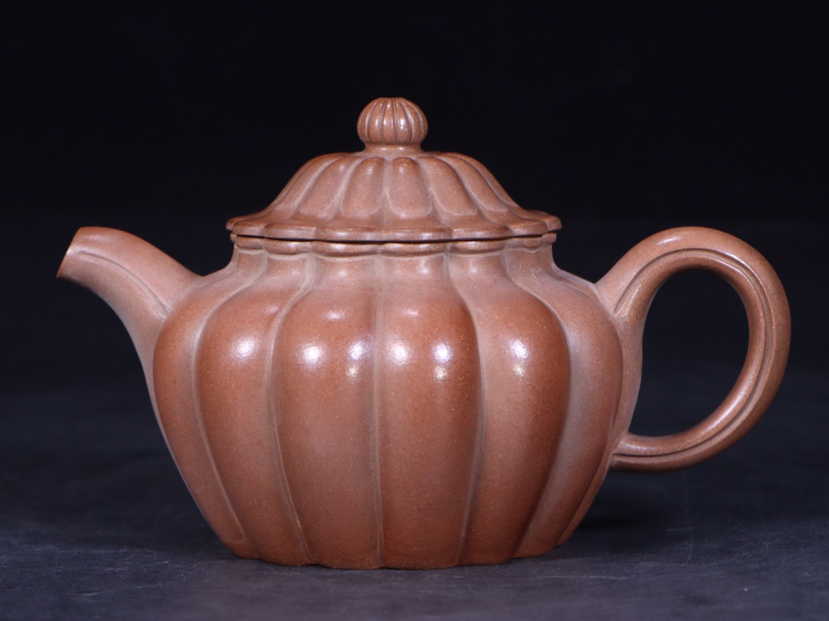 - ◆御泓軒◆『清時代 潘子龍製 瓜稜紋茶壺 宜興紫砂 常滑 朱泥急須 煎茶道具 茶壷』極細工・古賞物・中国古玩・中国古美術