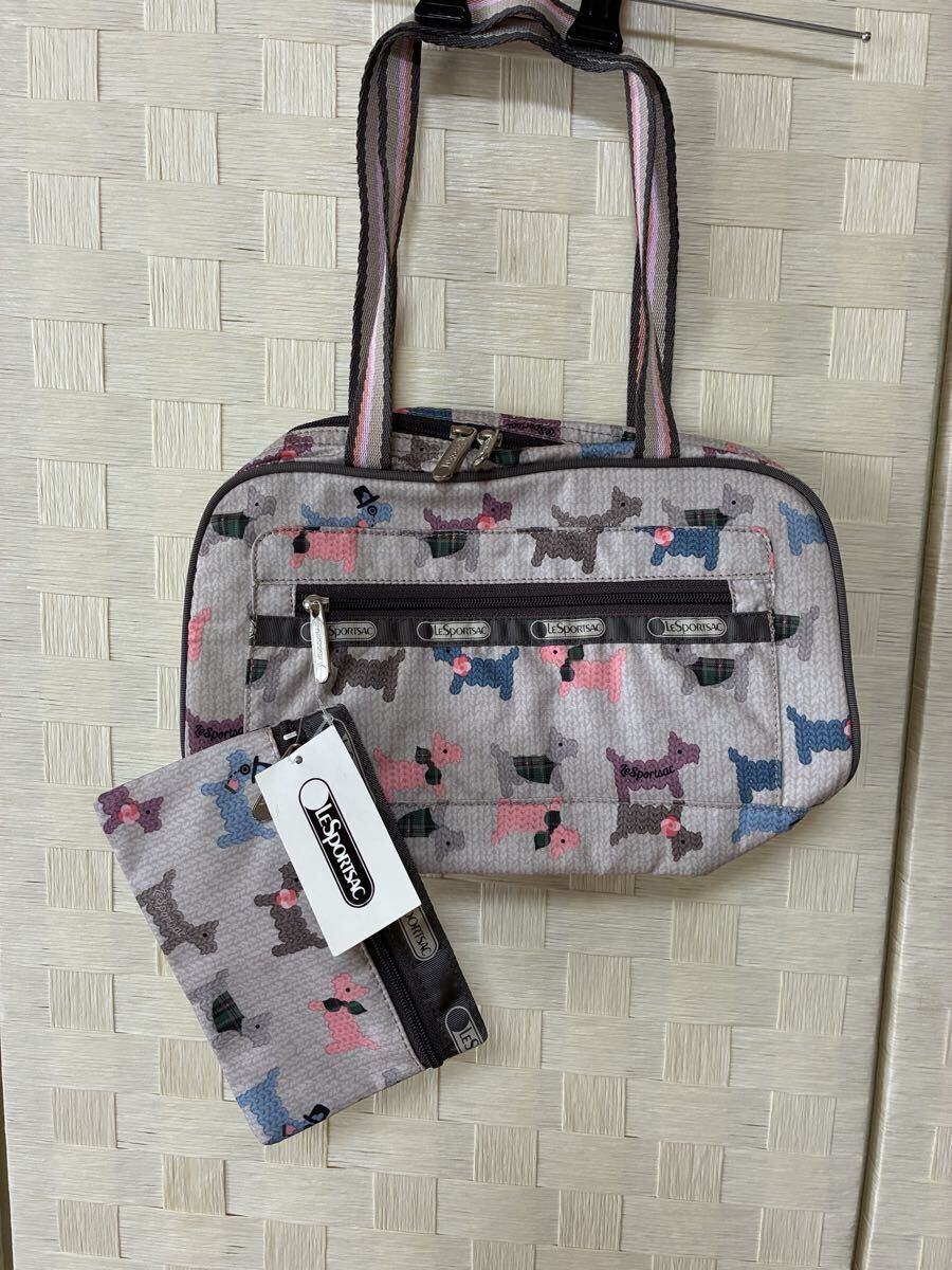 > レスポートサック ショルダーバッグ ポーチ付 ナイロン 犬柄 グレー 可愛い 軽量 LeSportsac 今からの季節 テリア好きの方へ