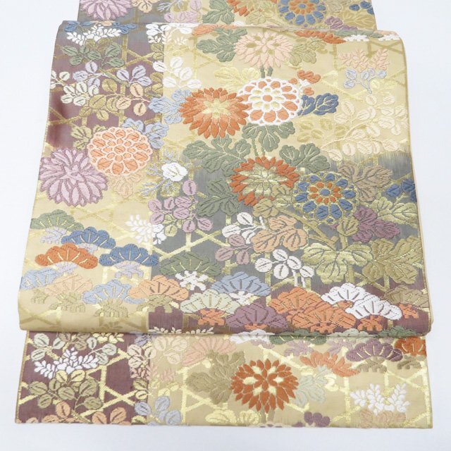 - ★きもの北條★ 唐織 花模様 松 菊 萩 箔糸 六通 仕立て上がり 中古 正絹 袋帯 T796-19