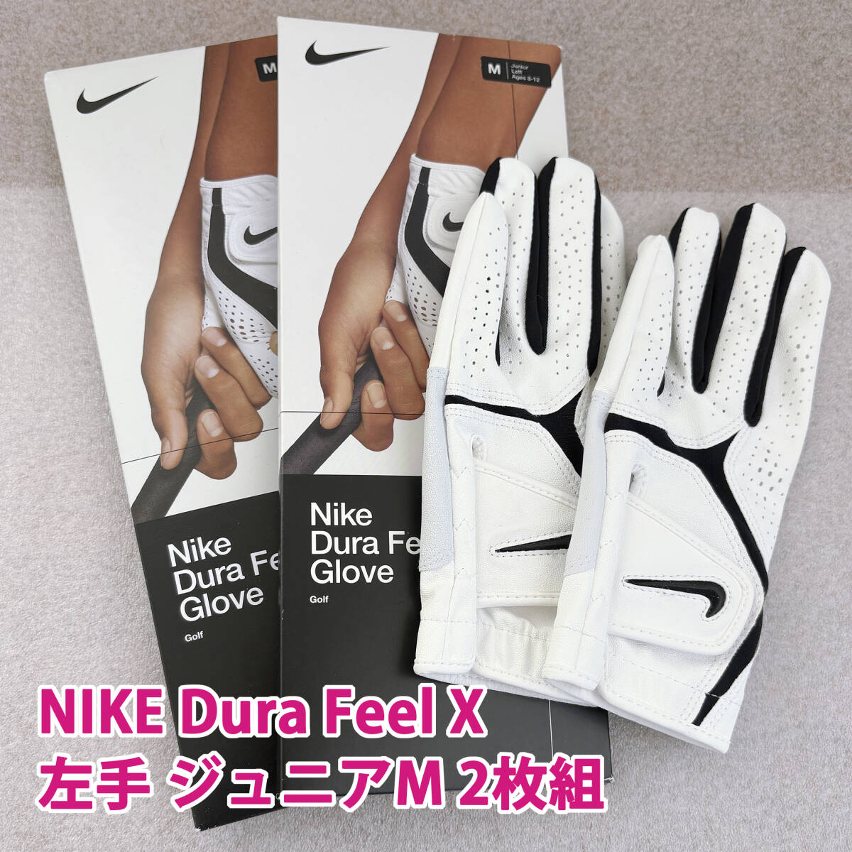 - 新品 2枚組 日本未入荷 NIKE ゴルフグローブ 左手用 Dura Feel X ジュニアM(ジュニアLサイズ~レディースSS程度) 手の小さい大人も使える