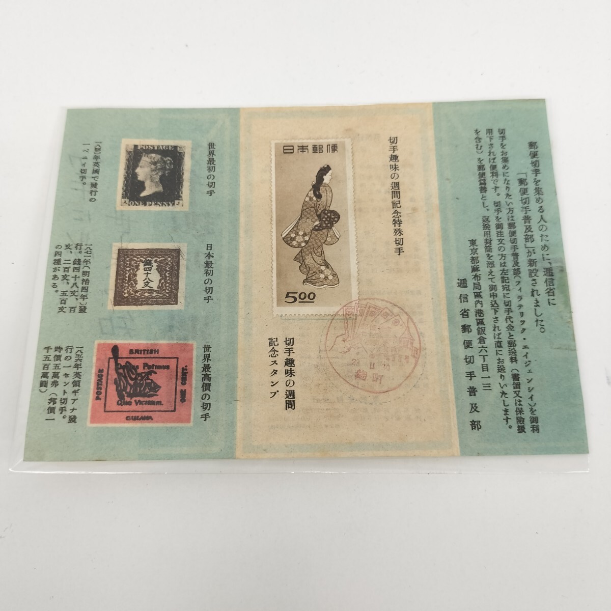 - 【25*10014】希少/見返り美人 切手趣味の週間 記念特殊切手 記念スタンプ 台紙付き