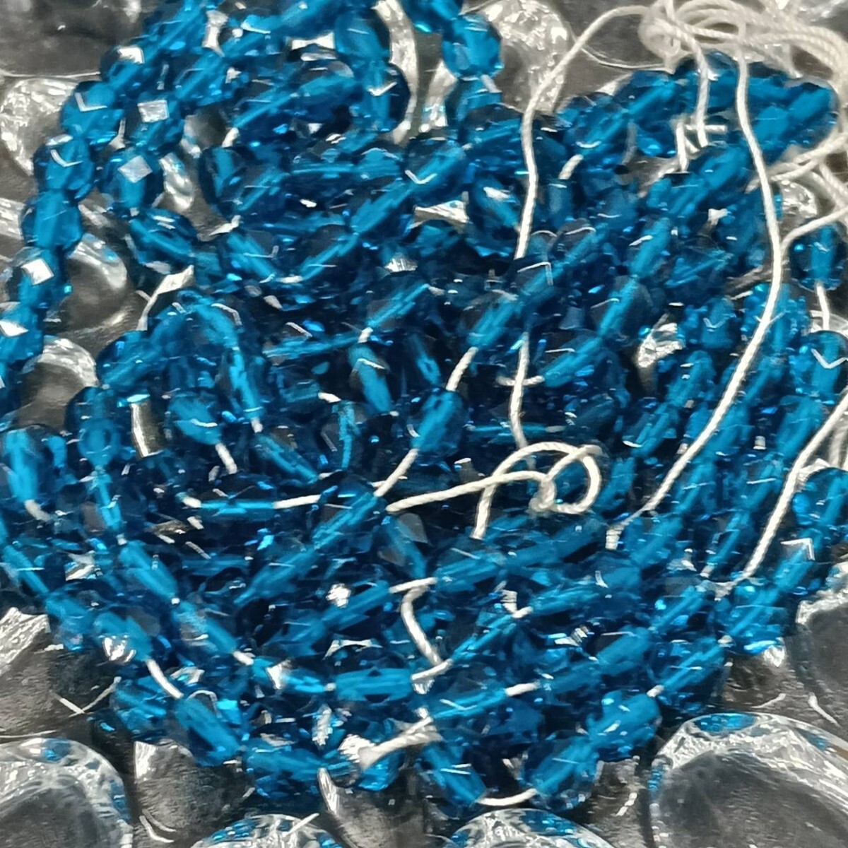> L480 ☆未使用 大量 チェコ ファイアポリッシュ ガラスビーズ 47g 6×5mm チェコカット ラウンド ネイビー ブルー 大粒 ヴィンテージ B-383