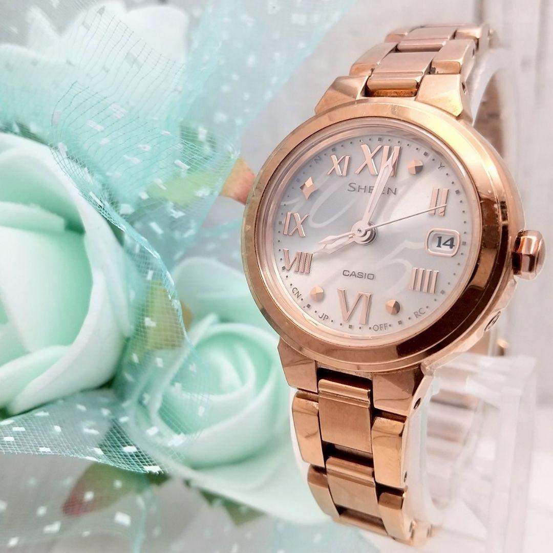 - 稼働品 カシオ 電波ソーラー 腕時計 レディース デイト機能