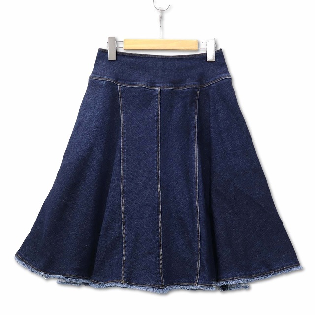 > エムズグレイシー M'S GRACY グログラン バックリボン カットオフ デニム フレアスカート ブルー 817561 38 (M) レディース