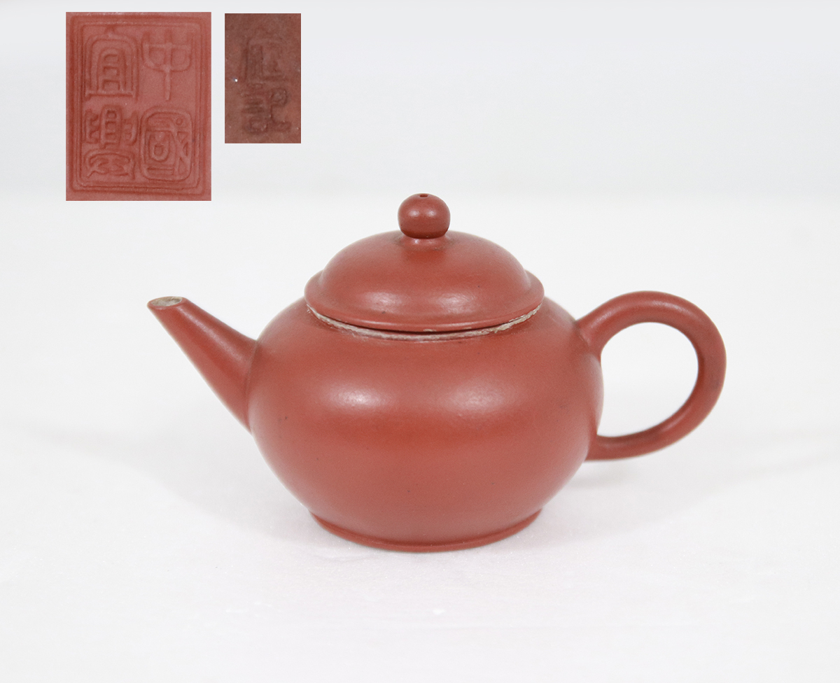 > 250889 唐物 大振り 庭記 朱泥急須 水平 紫砂 中国宜興 茶道具 書道具