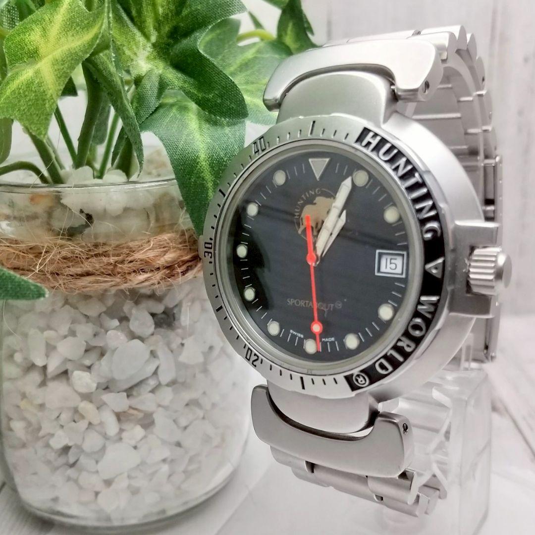 - 稼働品 ハンティングワールド デイト機能付き 腕時計 20気圧防水機能