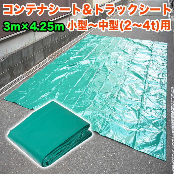 > コンテナシートカバー トラック バッカン 荷台 産廃用 シート 3m × 4.25m 4250mm × 3000mm 小型 中型 2~4t 用 荷台 ハトメ付 FJ5844