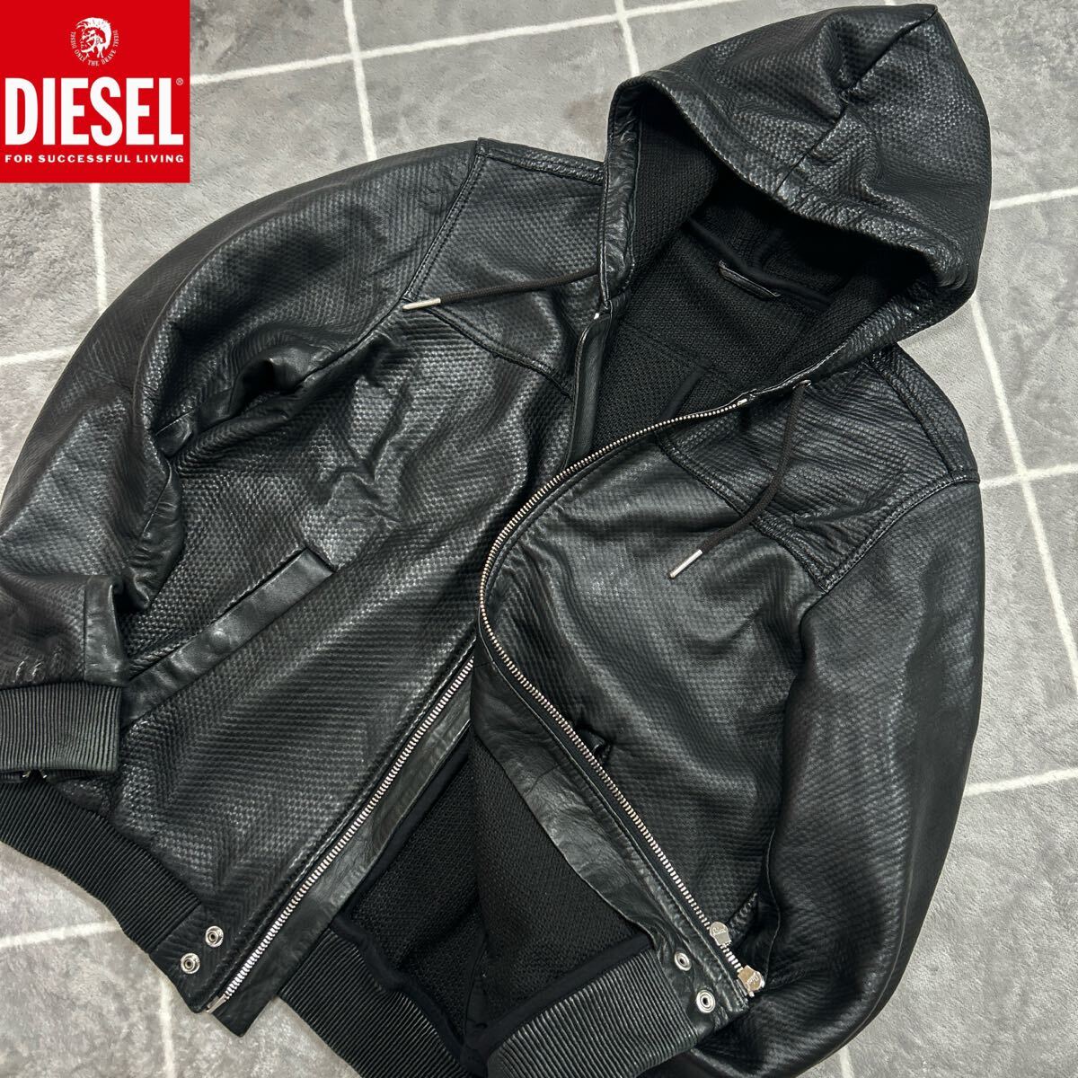 - 【極美品XL】最高傑作 幻の逸材 DIESEL ディーゼル レザージャケット レザーパーカー黒 羊革 ラムレザー【滑らかな手触り】クロコダイル柄