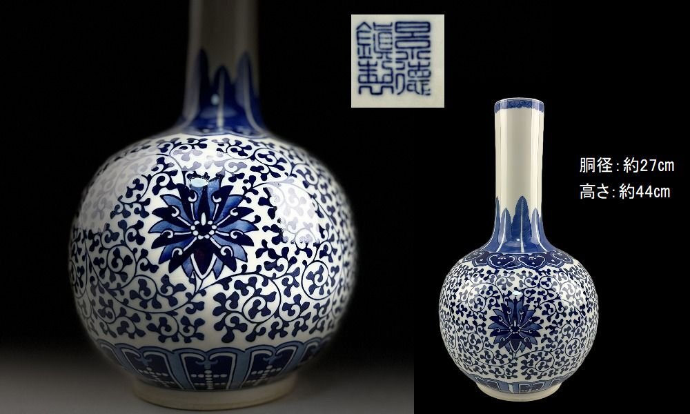 - SR01029青花染付 大花瓶 景徳鎮製款 纒枝花文染付絵 高44㎝ 中国景徳鎮美術焼物