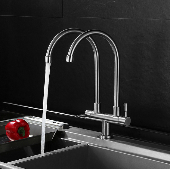 - 二口水栓 キッチン 流し台 台所用 二股蛇口 交換自分で ダブルハンドル おしゃれ 台付 水栓金具 2槽シンク用 単水栓 360度回転 取付簡単 水
