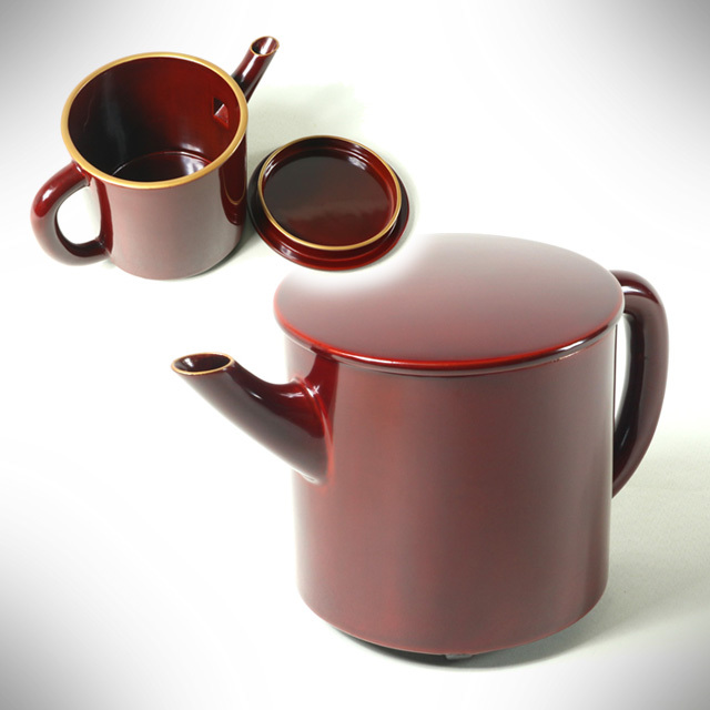 ●c1080●美色【湯桶 塗分紅溜金縁黒/花器代わりに】検お茶会煎茶道具茶懐石華道具紅春慶輪島塗●西瓜●