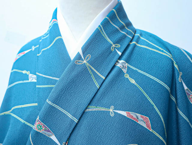 - 《京都一輝堂》【着物】小紋 ちりめん 組紐 扇子文 身丈約163cm 裄丈約66cm 24Z-1052